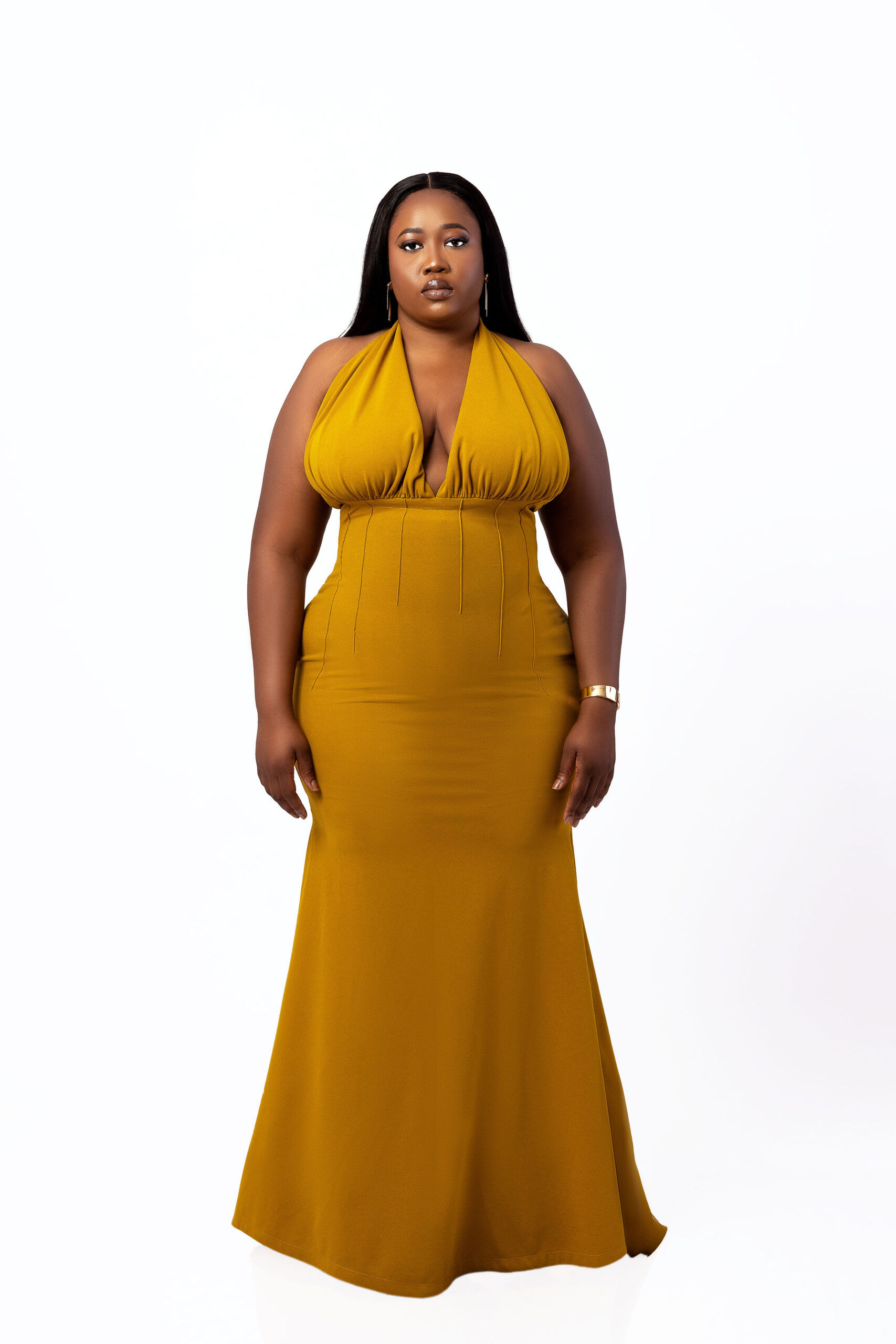 | Figure-Hugging Silhouette, Halter Neckline, Subtle Mermaid Hem |
